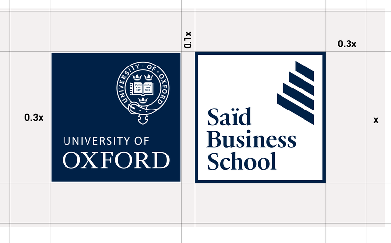 When using a partner brand with the University of Oxford logo the exclusion zone between the logos can be reduced to to up to 0.1x. This is the only exception to the 0.3x exclusion rule and the rule only applies for University partner brands.